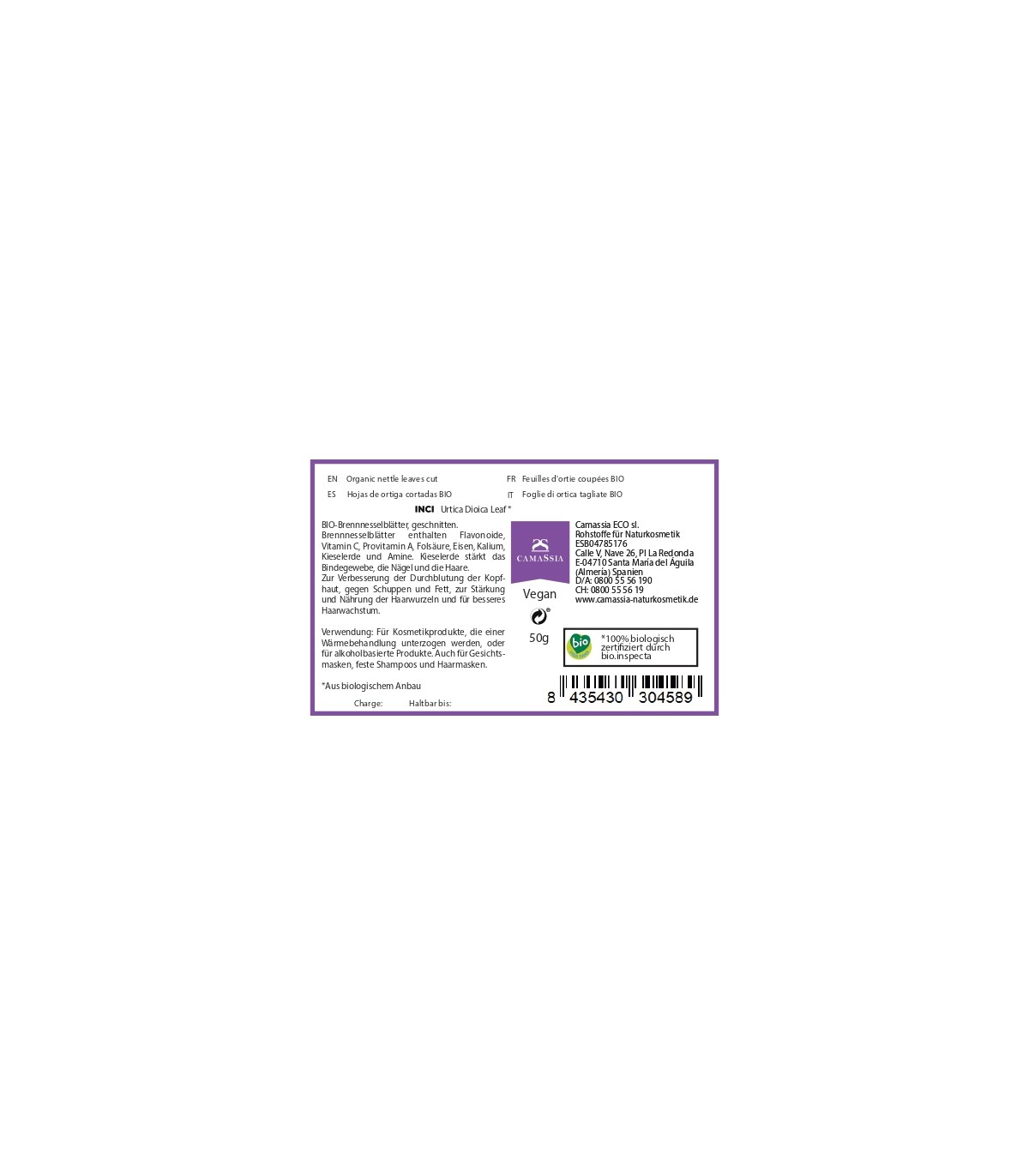 Brennnessel BIO (Urtica Dioica), zerkleinert, aus biologischem Anbau 50 g
