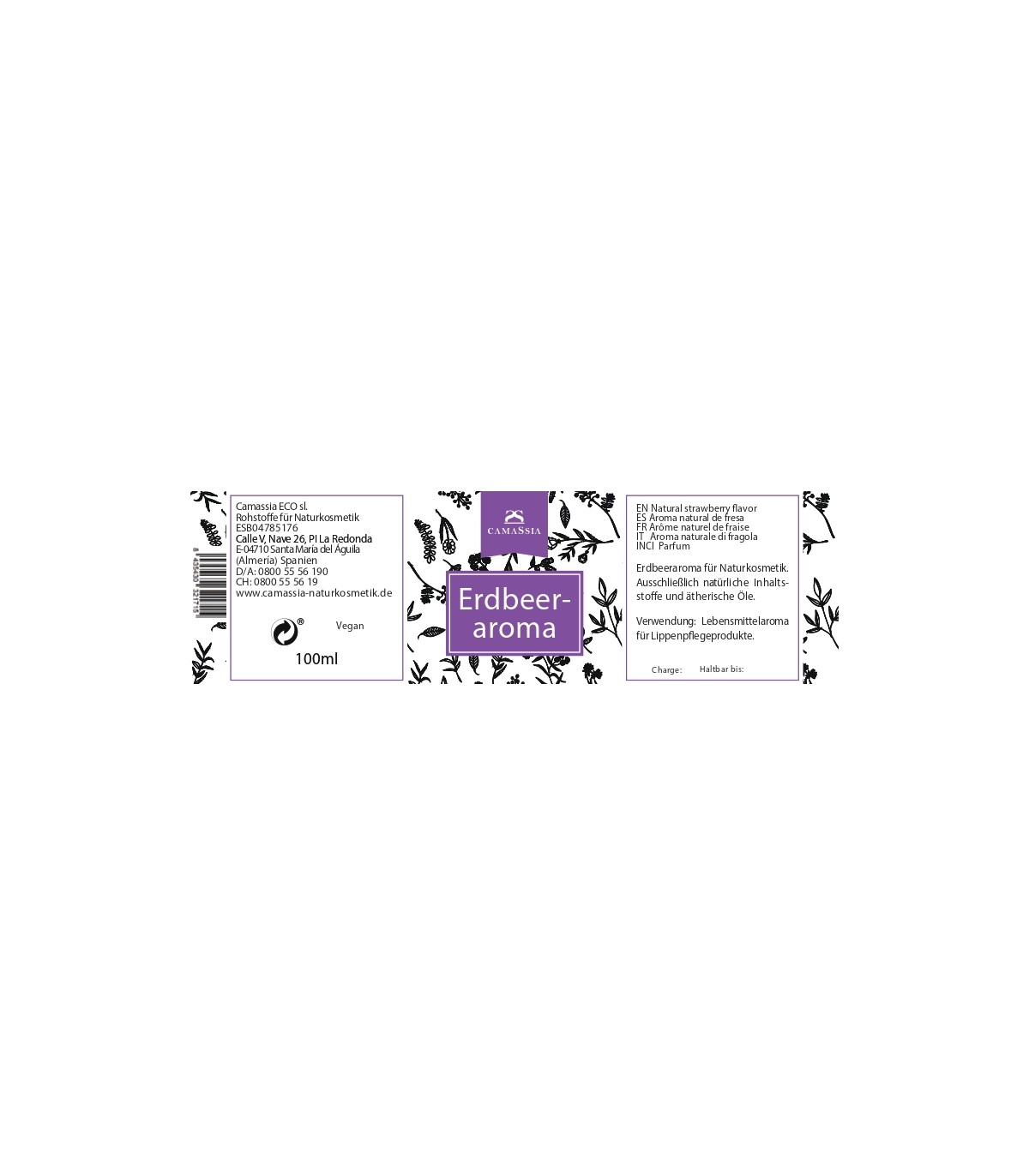 Das natürliche Erdbeeraroma von Camassia Naturkosmetik enthält nur rein natürliche Substanzen in Sonnenblumenöl. Lebensmittelqualität, für Naturkosmetik, besonders beliebt in Lippenbalsam.