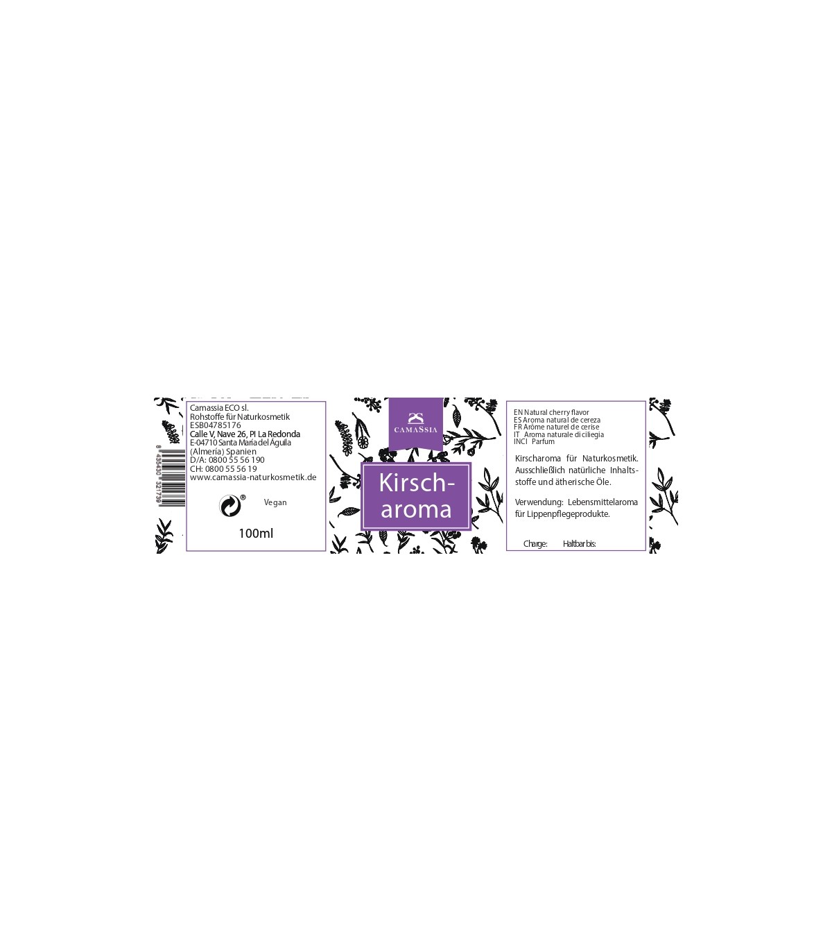 Das natürliche Kirschroma von Camassia Naturkosmetik enthält nur rein natürliche Substanzen in Sonnenblumenöl. Lebensmittelqualität, für Naturkosmetik, besonders beliebt in Lippenbalsam.