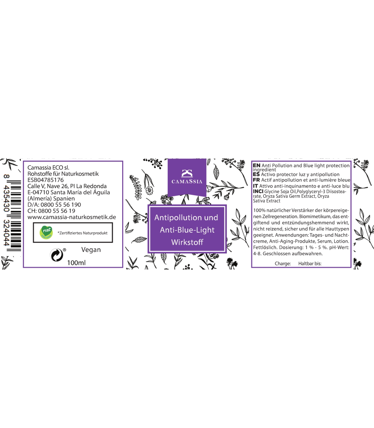 Dieser Antipollution und Anti-Blue-Light Wirkstoff, den du jetzt in unserem Online-Shop Camassia Naturkosmetik zum besten Preis kaufen kannst, wirkt biometrisch, stimuliert die Entigiftungsgene und hemmt Entzündungen. Er hat keine reizende Wirkung und ist für alle Hauttypen sicher.