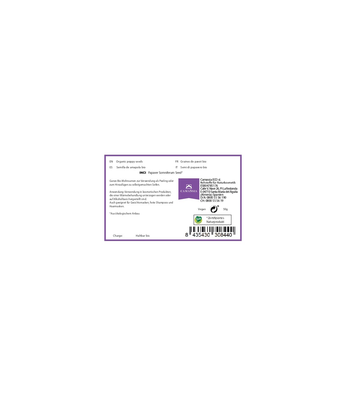 Ganze Mohnsamen für Naturkosmetik (Peelings oder selbstgemachte Seife).