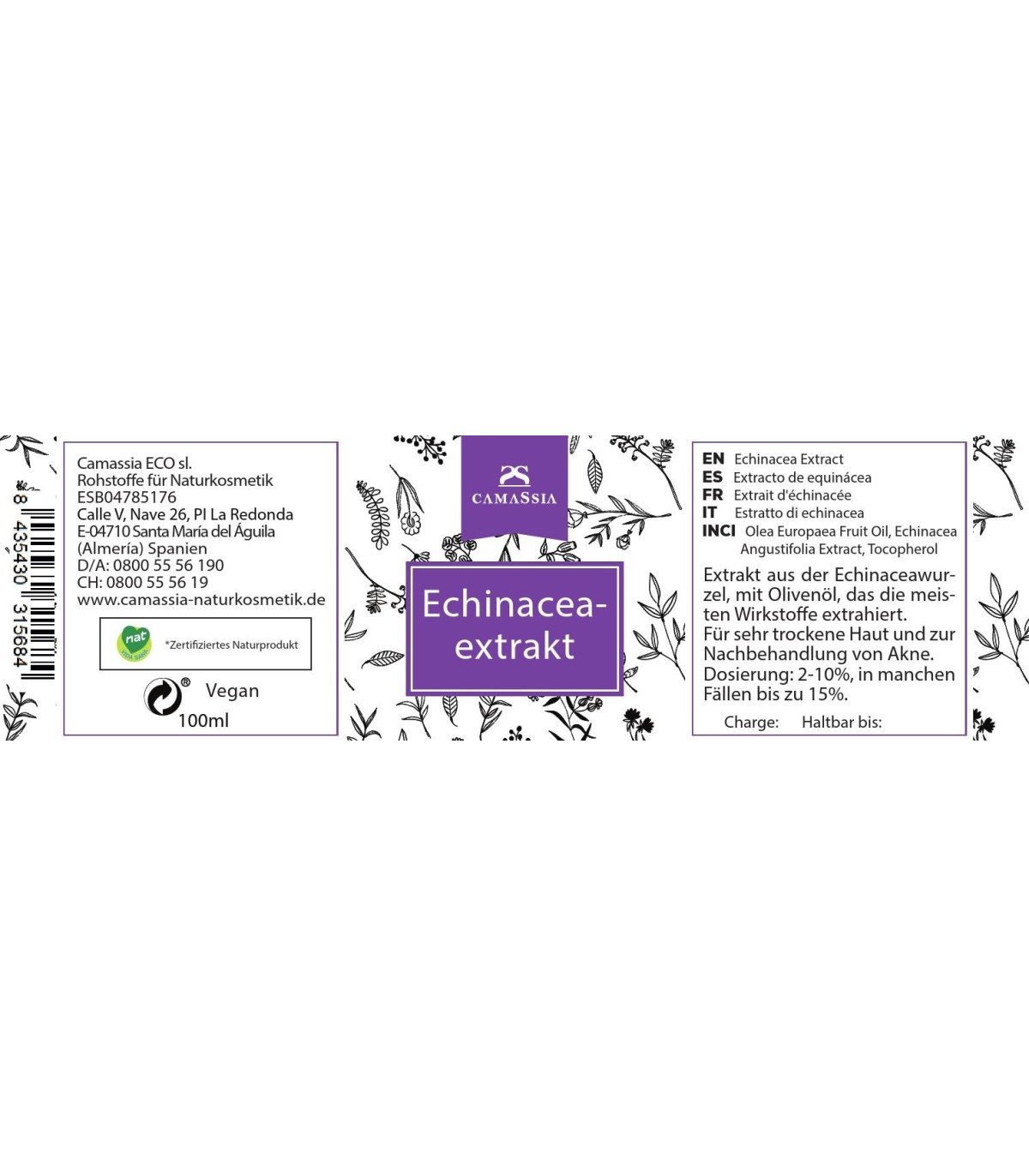 INCI: Olea Europaea Fruit Oil, Echinacea Angustifolia Extract, Tocopherol