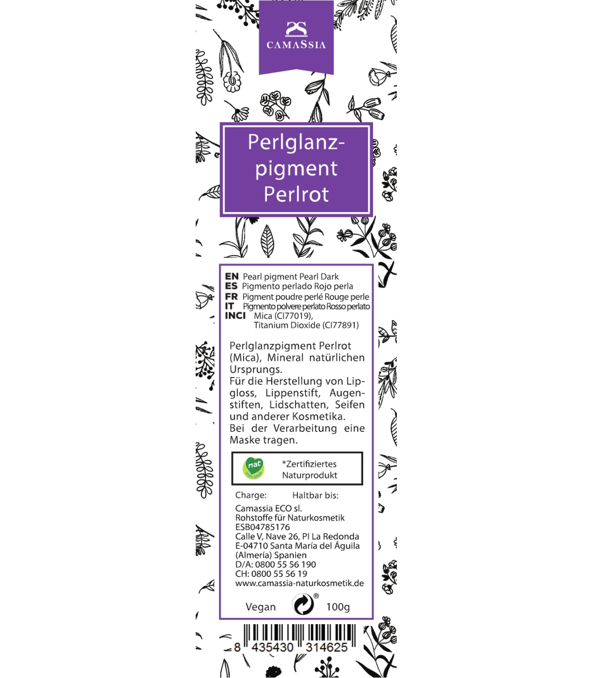 Mit diesem roten Perlglanzpigment kann man beispielsweise Lippenstifte, Lipgloss, Eyeliner, Lidschatten oder Seife selber machen.